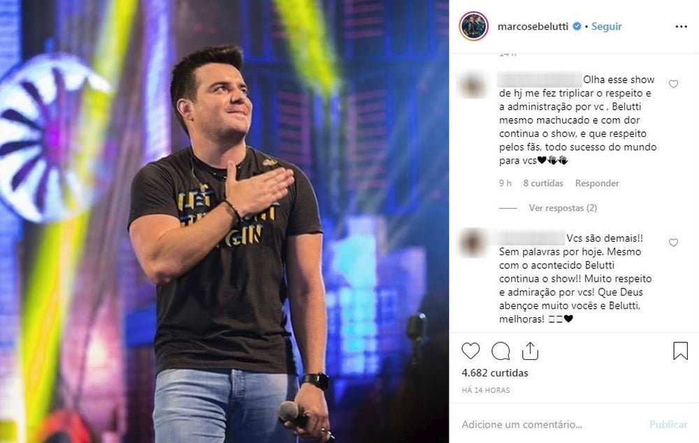 Em uma postagem sobre o show em Ourinhos, no perfil da dupla no Instagram, fãs comentaram sobre o ocorrido e desejaram melhoras ao sertanejo. Em uma das postagens, uma fã escreveu: “Vcs são demais!! Sem palavras por hoje. Mesmo com o acontecido Belutti continua o show!! Muito respeito e admiração por vcs! Que Deus abençoe muito vocês e Belutti, melhoras”.