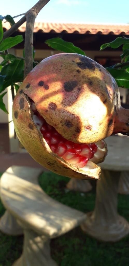 Segundo Eliana, a romã produz frutos grandes e saborosos. Já o maracujá doce, que forma como uma parreira, é para ser consumido com fruta – não para suco. Ela contou ainda que a goiaba araçá, que é pequena, também serve de alimento para pássaros. Todas as mudas são cultivadas em copos plásticos coletados em festas realizadas em Palmital, possibilitando a utilização do material para uma finalidade de recuperação da arborização.