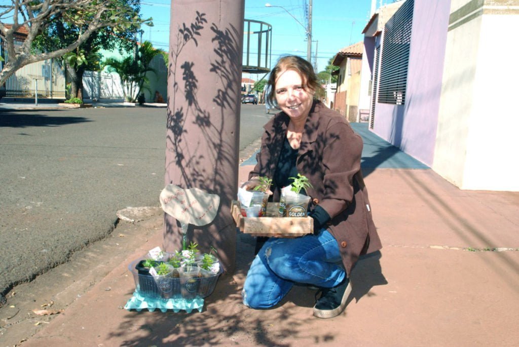 Eliana ofereceu mudas de romã graúda, maracujá doce e goiaba araçá que, conforme placa colocada junto ao poste, podiam ser retiradas por qualquer pessoa que passasse pela rua. “Sempre faço a distribuição de mudas e as coloco em frente da minha casa. Esta semana, estou aproveitando a volta às aulas na escola Elisabete. Assim, as crianças e mães que passam podem pegar e levar para cultivar em suas casas”, disse.