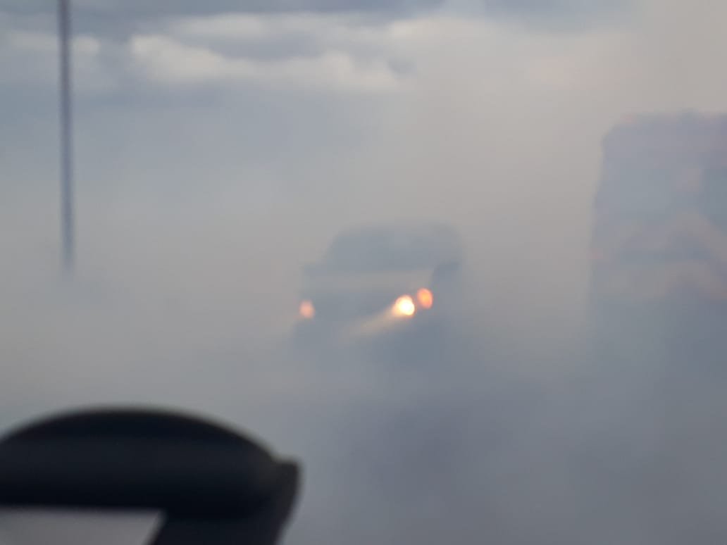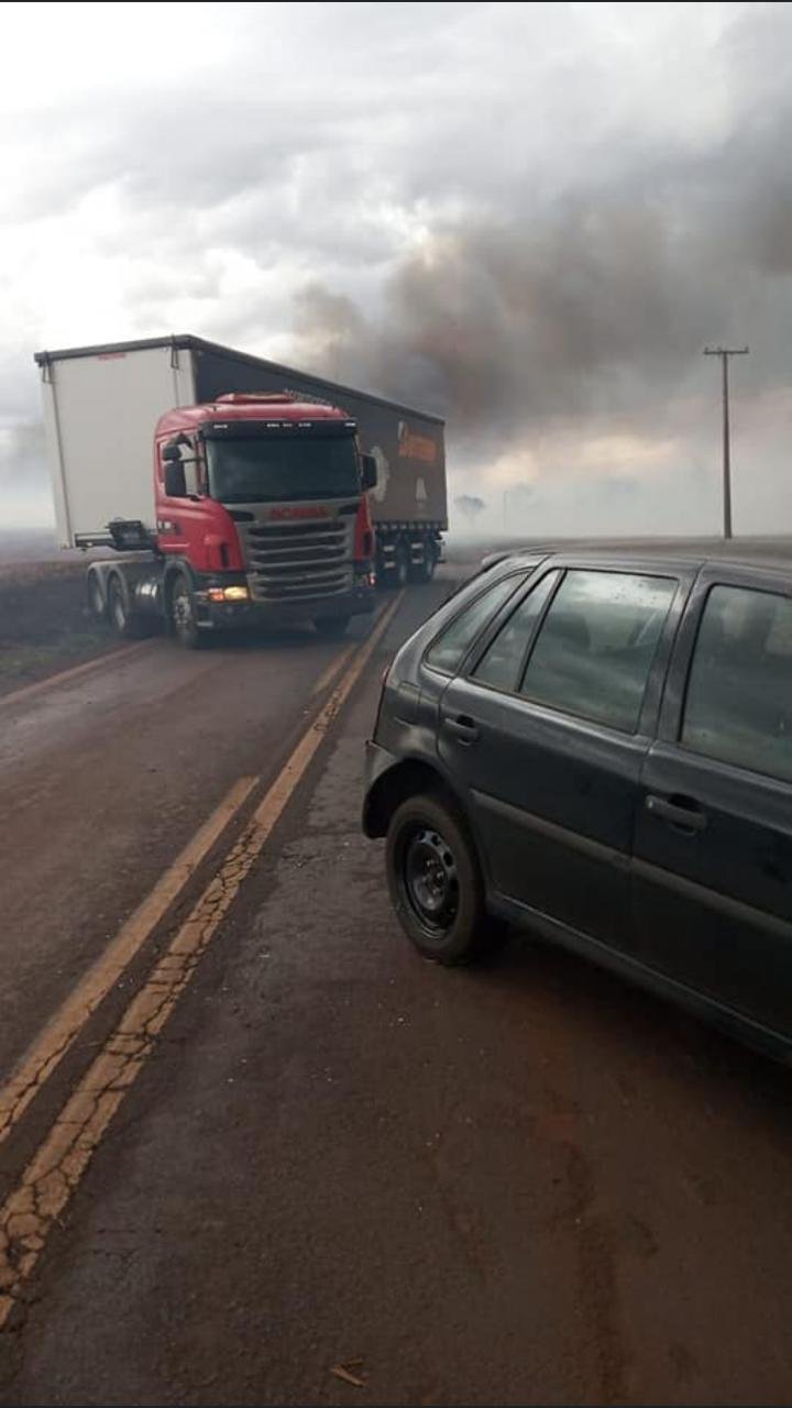 Testemunhas relataram a formação de uma grande cortina de fumaça que limitou a visão na rodovia, atingindo também o patrimônio Nossa Senhora Aparecida, causando pânico nos moradores.