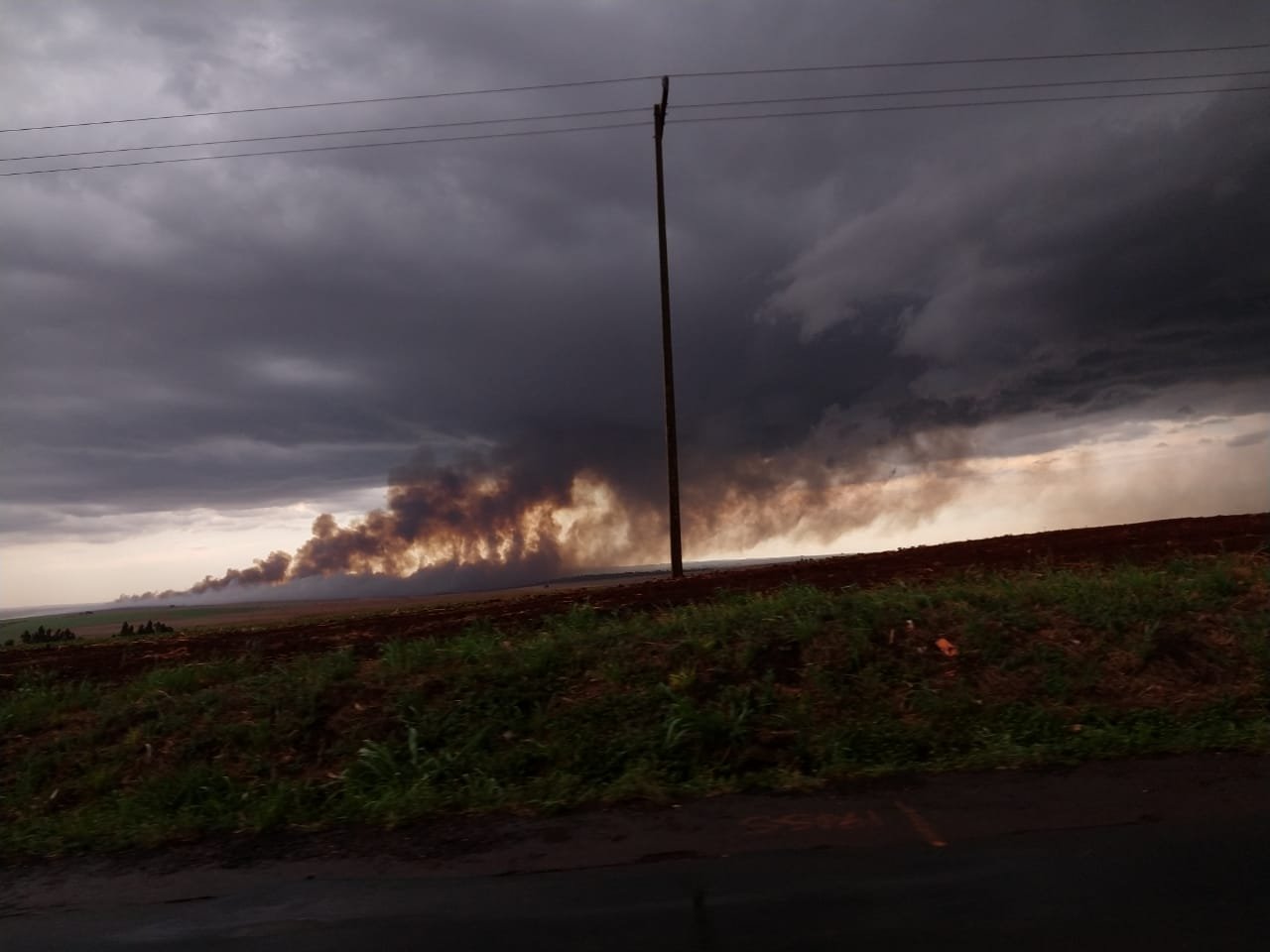 Um incêndio de grandes proporções, iniciado no final da tarde desta segunda-feira (28) em um canavial, às margens da Rodovia Eurides Brandão, que liga Andirá (PR) à Palmital (SP), pela Rodovia Nelson Leopoldino, causou acidentes na pista devido a grande cortina de fumaça.
