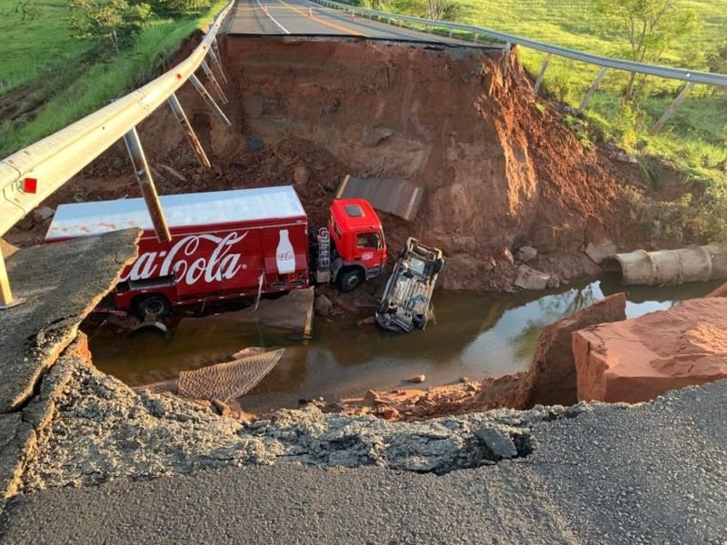 Um guindaste retirou nesta quarta-feira (12/02) o carro e o caminhão que caíram em uma cratera aberta na Rodovia Dona Leonor Mendes de Barros (SP-333) durante uma tempestade em Marília (SP). Um funcionário da concessionária que administra a via morreu no acidente.