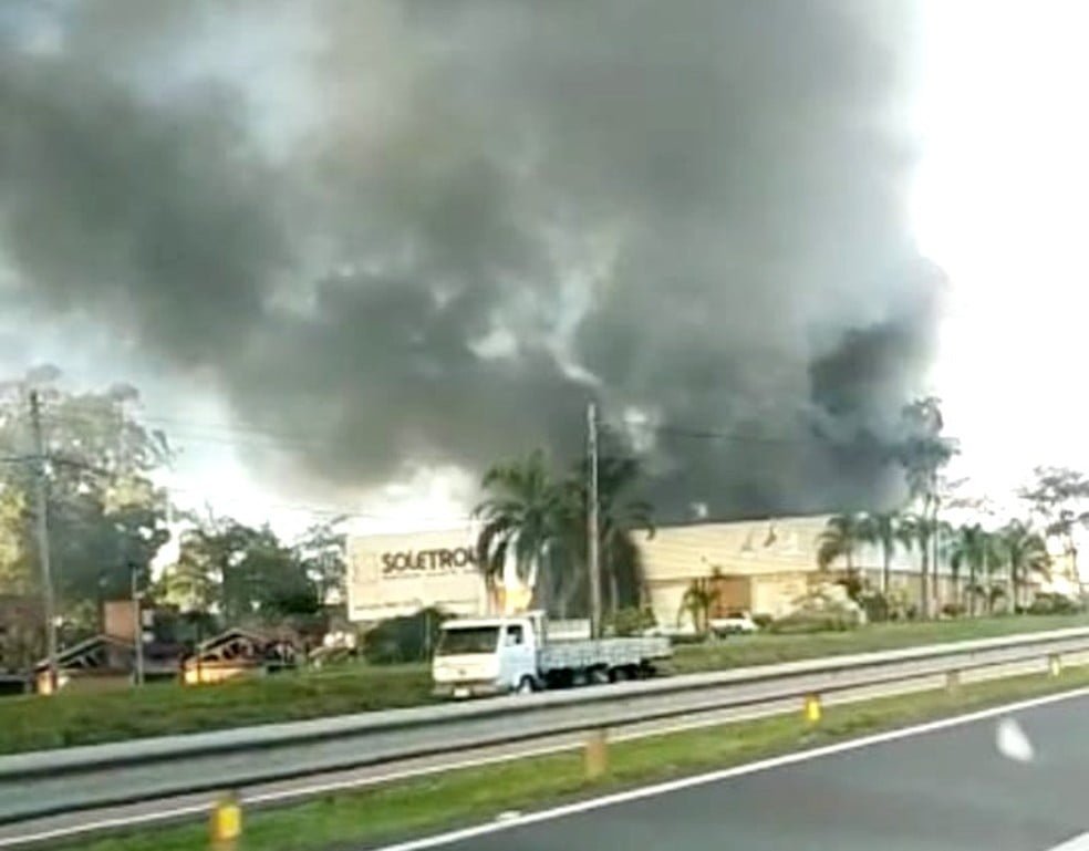 Fumaça negra podia ser vista à distância por motoristas que passavam pela SP-300 — Foto: Arquivo pessoal
