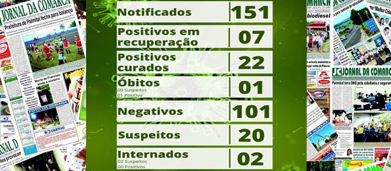 O Boletim Epidemiológico divulgado pela Secretaria de Saúde na tarde desta sexta-feira (26/06) indicou que Palmital manteve os 30 casos confirmados de coronavírus. Os números da doença são os mesmos dos registrados na semana passada. O balanço também apontou o aumento nas notificações e no número de ocorrências negativadas. A grande maioria dos pacientes infectados foi classificada como curada do covid-19.