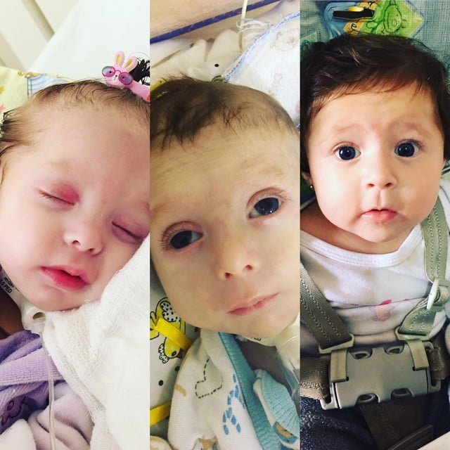 Segundo a mãe, os dois bebês tinham que usar colírio, pois os olhos não fechavam e isso poderia ressecar e prejudicar a retina deles. Depois de algum tempo, as crianças apresentaram outros problemas. Sarah teve pneumonia aspirativa e precisou ficar 30 dias na UTI. Mais tarde, ela e o irmão passaram a ter crises convulsivas.