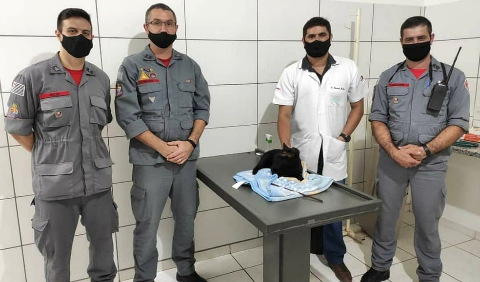 O sargento dos bombeiros Alex Ramos informou ao G1 que a corporação foi chamada por volta das 7h30 para o atendimento de uma ocorrência que envolvia o socorro de um gato que estava preso em um vergalhão. “Provavelmente, na madrugada, o gatinho pulou da casa do vizinho e não viu o vergalhão. Já fazia um tempo que ele estava preso e estava quase morto, bastante debilitado”, afirmou.
