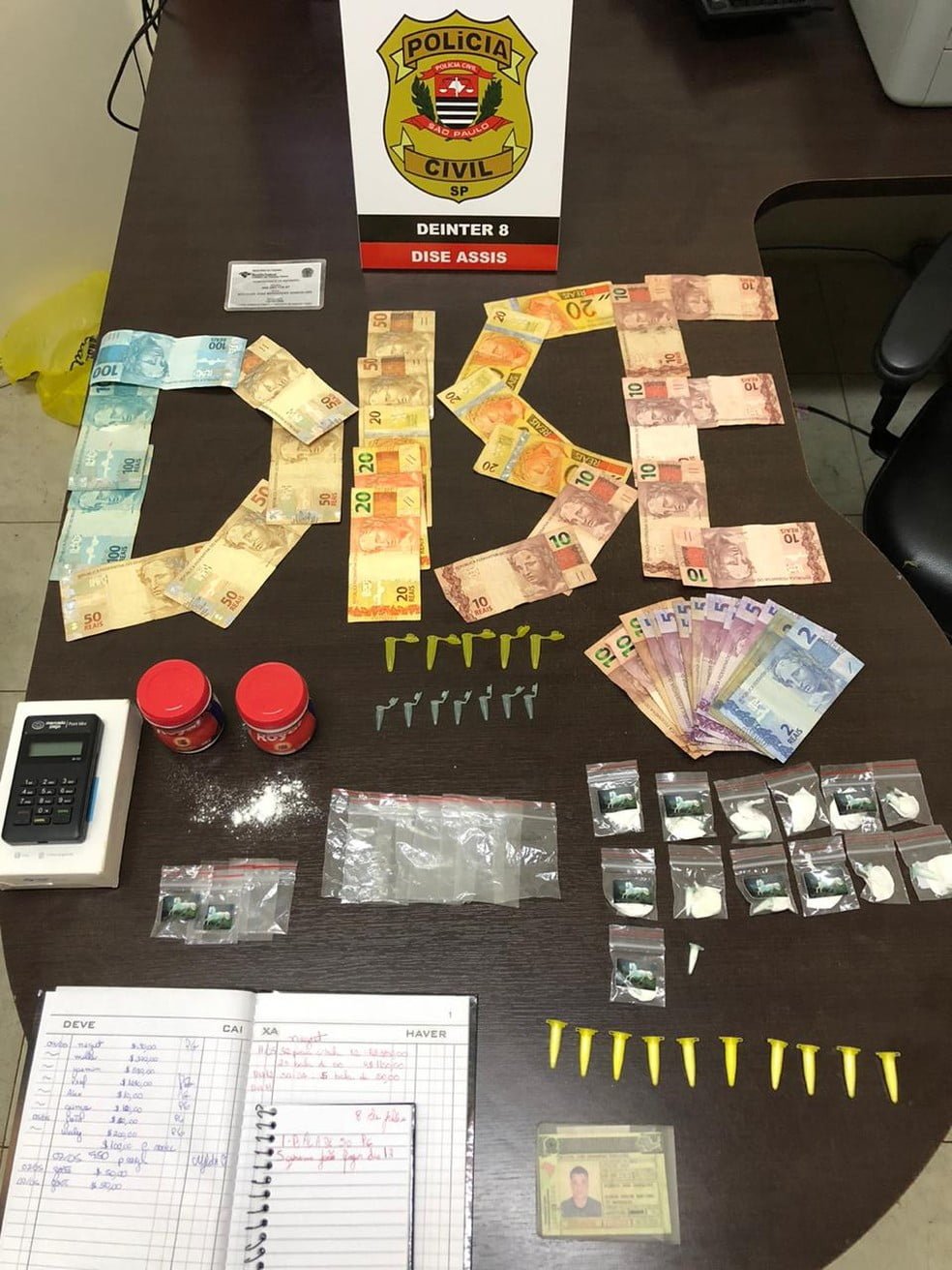 Segundo a polícia, após dois meses de investigação, os policiais descobriram que o jovem armazenava drogas em sua casa e realizava serviço de entrega. Ele foi encontrado na Rua Santa Cecília, com envelopes com cocaína e uma quantia em dinheiro.