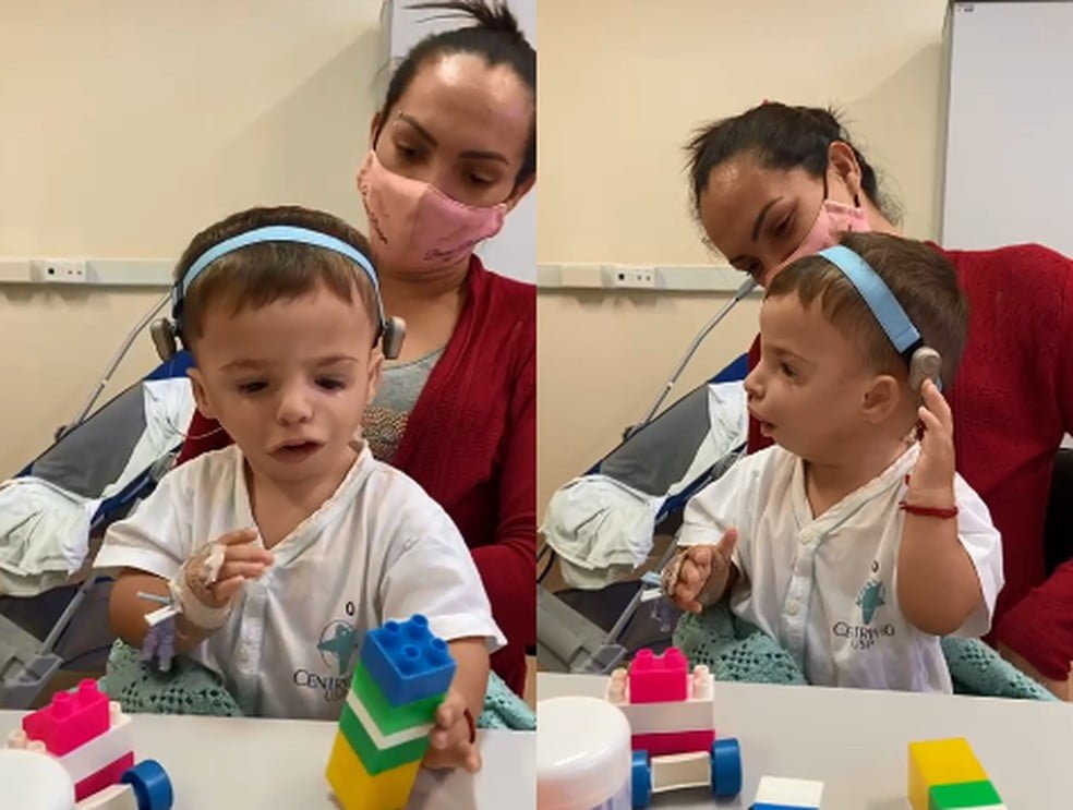 “Quando colocaram o aparelho e cantaram para ele, ele chorava e olhava pra mim com aquela carinha tipo: ‘Mãe, o que está acontecendo?’ Não tenho palavras para explicar como foi a hora que ele escutou”, conta a mãe.