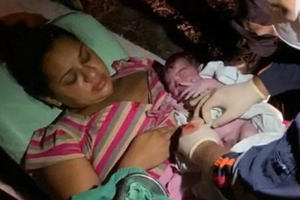 A gestante, que já estava em trabalho de parto e com a bolsa rompida, foi colocada em uma maca às margens da rodovia e teve o parto realizado ali mesmo.
