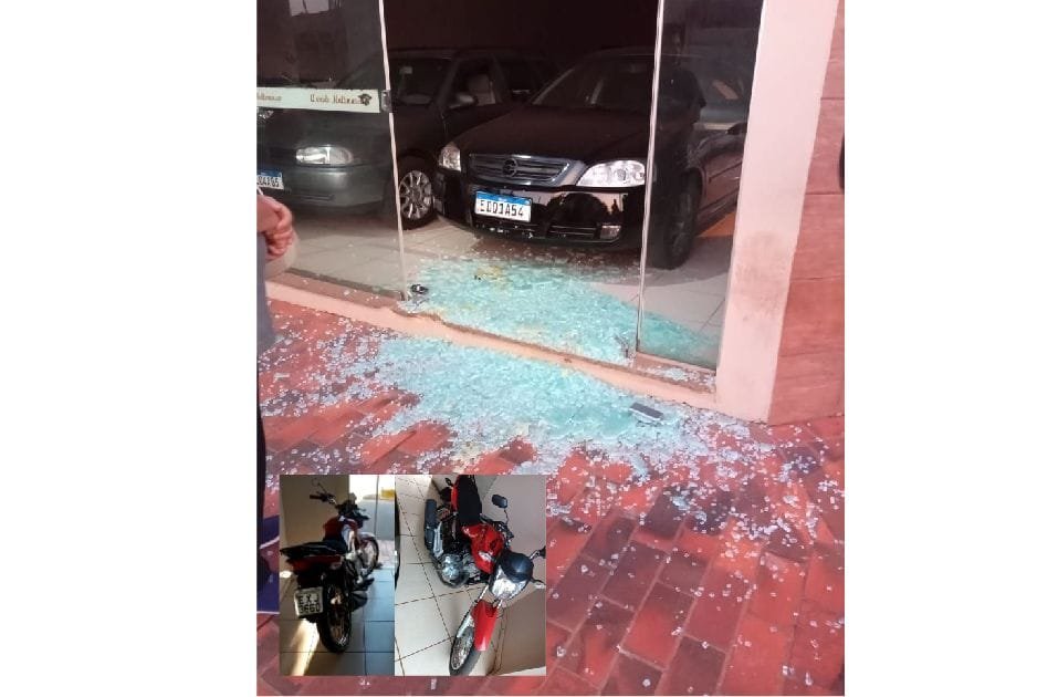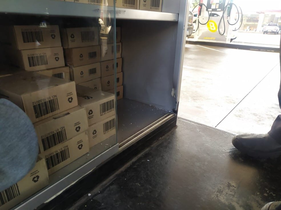 Antes de fugir, o bandido ainda disparou contra o vidro da loja de conveniência, que ficou danificado, mas não caiu por causa de um adesivo.