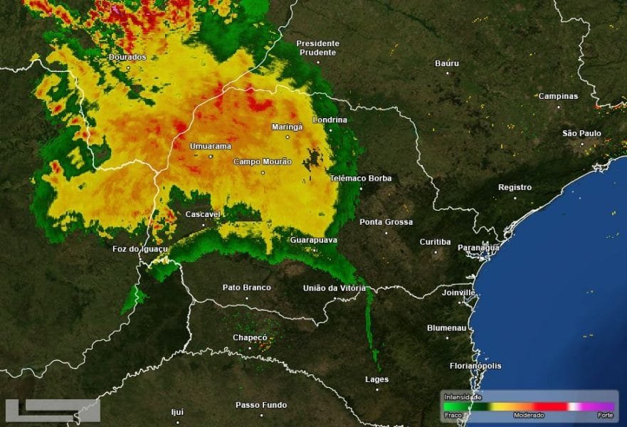 De acordo com a Defesa Civil, linhas de instabilidade já atuam em toda a região, influenciadas por um sistema meteorológico que ainda atua no Sul do Brasil.