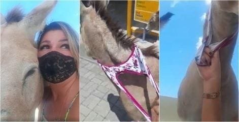 Uma ativista da causa animal usou a própria calcinha para prender um jumento durante o resgate de dois animais no Anel Viário de Maracanaú, na Região Metropolitana de Fortaleza. O caso aconteceu no domingo (10) e foi compartilhado nas redes sociais.