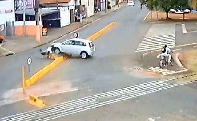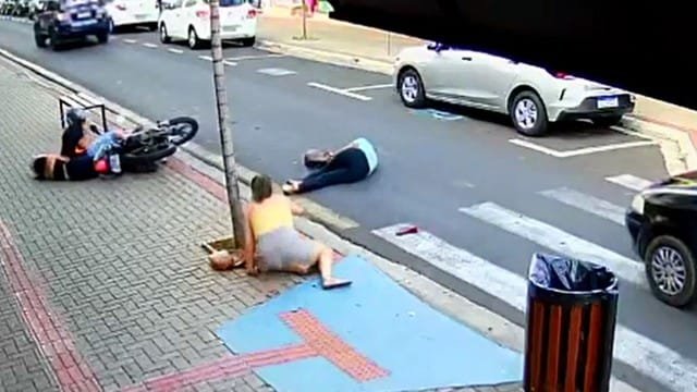 O acidente foi registrado por uma câmera de segurança. Nas imagens é possível ver que tanto as pedestres quanto o motociclista e a passageira da moto caíram no chão com o impacto da batida. Além disso, uma das vítimas atingidas demora a se levantar.
