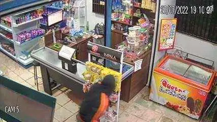 Uma mulher reagiu a um assalto e expulsou o ladrão a vassouradas, em uma loja na Fercal, no Distrito Federal, na noite de quarta-feira (27). A ação foi gravada pelas câmeras de segurança do estabelecimento.