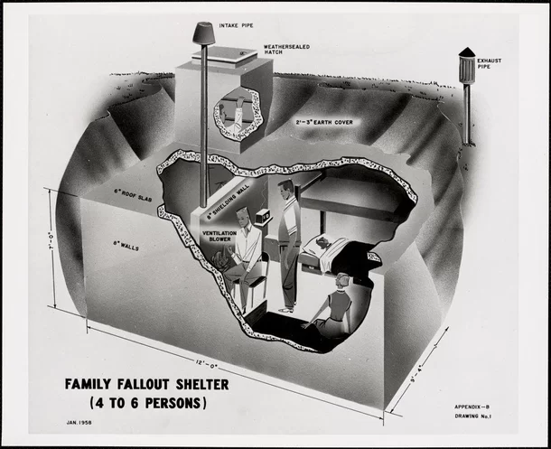 Nesse cenário de tensão no pós-Segunda Guerra Mundial e decorrer da Guerra Fria, o governo estadunidense decidiu criar milhares de abrigos antibombas espalhados dos grandes centros, como Nova York, a cidades do interior.