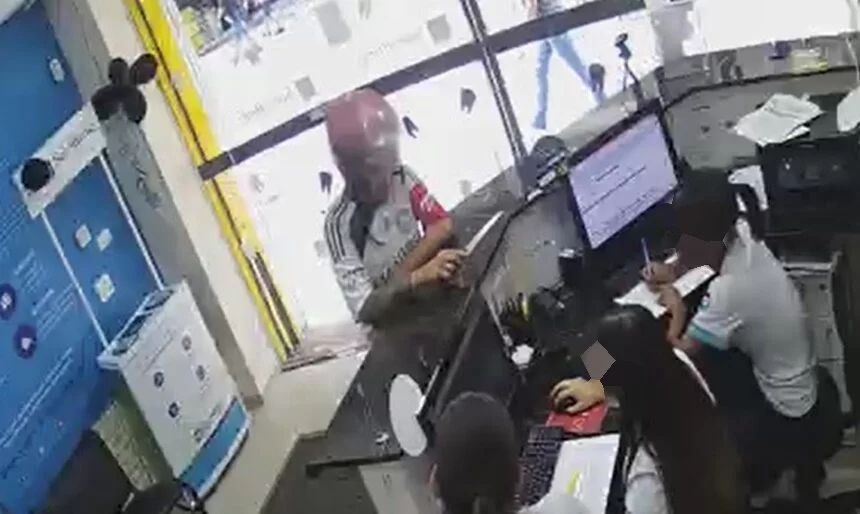 Ele se aproxima do balcão, saca uma faca e questiona as atendentes sobre a ex-companheira. Após confirmar a ausência dela, Roberto bate a faca no balcão. “Olha o que eu tenho para ela aqui”, afirma, aparentemente bêbado.