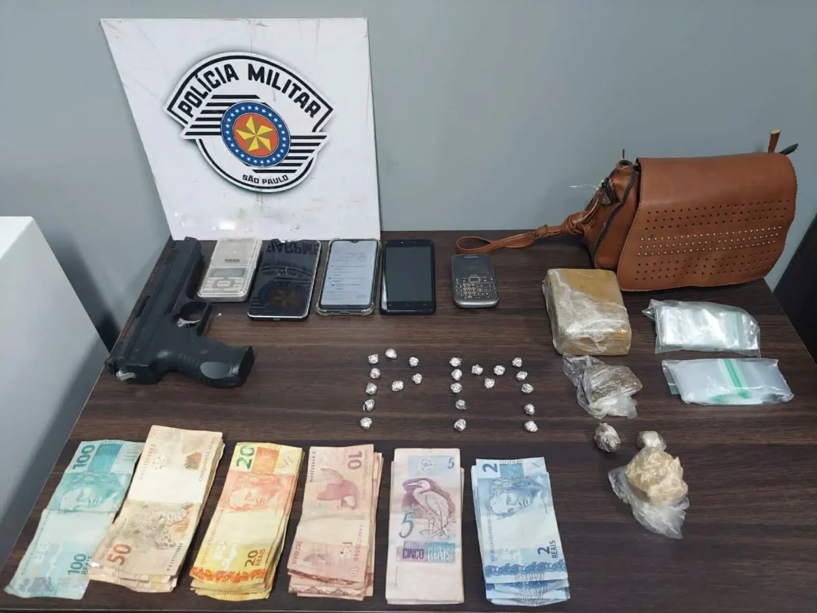 Com o respaldo da equipe de Força Tática, a vistoria no estabelecimento resultou não apenas na recuperação dos produtos furtados, mas também na descoberta de uma quantidade expressiva de entorpecentes. Foram apreendidas 22 pedras de crack, devidamente embaladas para comercialização, uma porção a granel de crack, meio tijolo de maconha, um simulacro de arma de fogo e a quantia de R$ 730,00 em dinheiro.