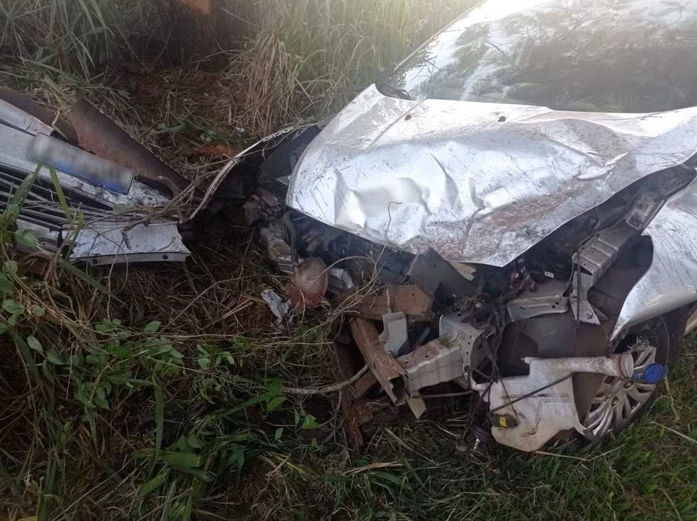 O veículo, com placas de Santa Cruz de Monte Castelo (PR), ainda teria batido contra uma árvore, destruindo completamente a frente do carro.