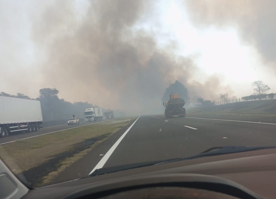 As equipes de policiamento no local avaliaram os riscos ao trânsito de veículos por aquele ponto e deliberaram pela interdição de ambos os sentidos no intervalo com maior concentração de fumaça, além de focos de incêndio que surgem nos canteiros centrais à medida em que a temperatura aumenta por causa do fogo.