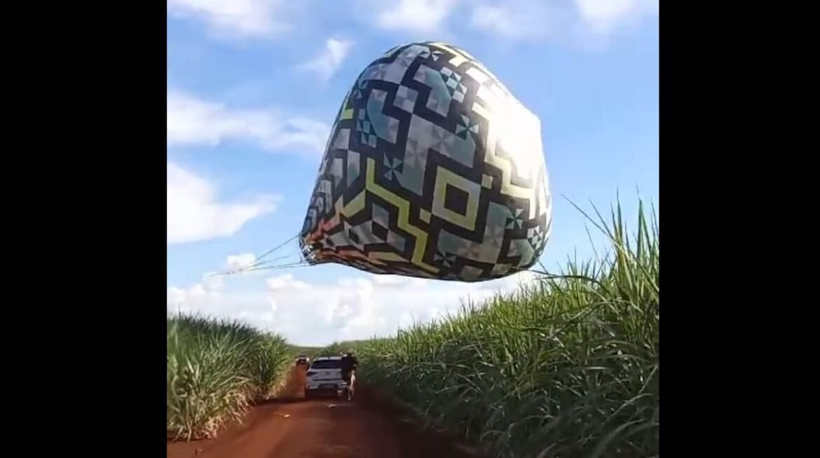 Um balão que teria sido solto em cidade do ABC Paulista, na região da Grande São Paulo, caiu na tarde deste domingo (09/02) na zona rural de Palmital. O artefato, que é uma prática considerada ilegal pelos riscos à aviação e de incêndios, desceu sobre um canavial em vicinal na Água dos Thomés, nas proximidades da Comunidade de São Roque onde são realizados acampamentos católicos, e foi resgatado por uma equipe que acompanhava o objeto por mais de 400 quilômetros desde o ponto de partida.