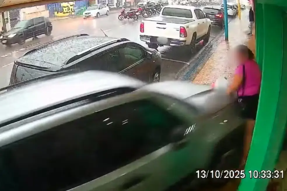 Um carro invadiu a calçada e atropelou uma mulher de 38 anos que estava parada em frente a uma loja na área central de Adamantina (SP), na manhã desta segunda-feira (13/10).