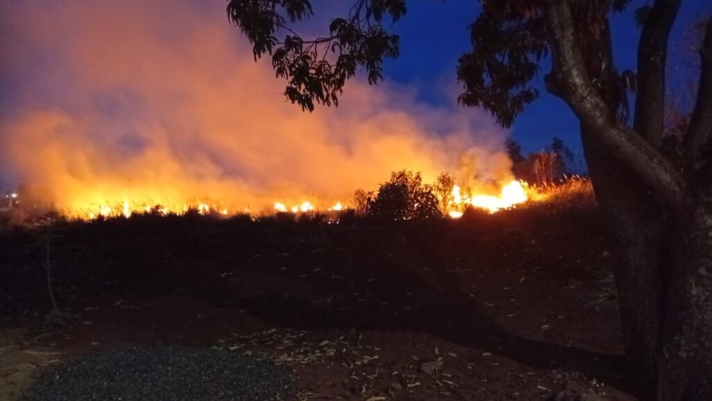 A Defesa Civil de Platina foi mobilizada no início da noite deste domingo (07/12) para combater um incêndio de grandes proporções que atingiu uma área de vegetação ao lado do conjunto habitacional Juvenal Bernini. O fogo, constatado por volta das 19 horas, consumiu um terreno na saída para a vicinal Clementino Alves de Souza, que dá acesso a Assis.