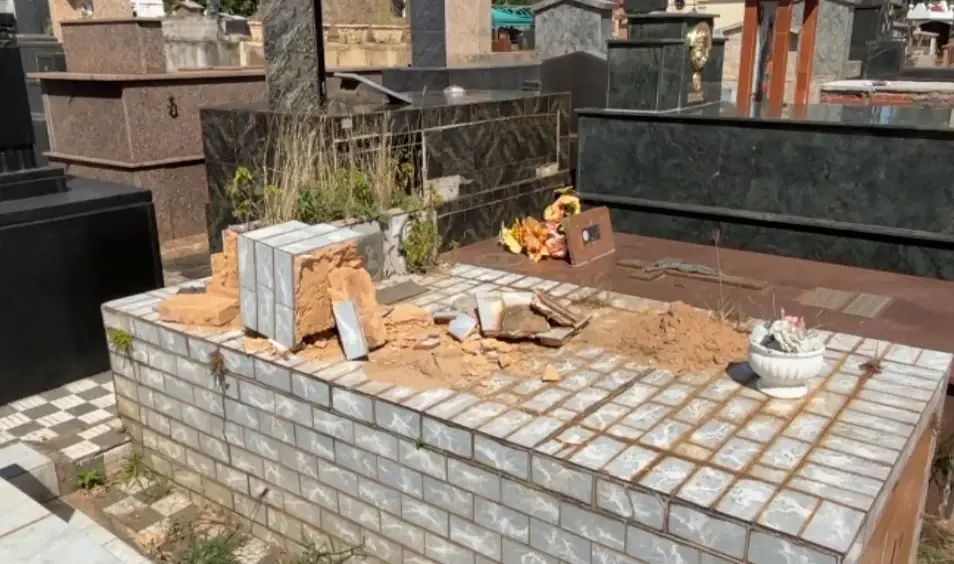 Segundo ele, há túmulos abertos com ossos humanos expostos e peças metálicas arrancadas. Em meio ao cenário de insegurança, um dos jazigos do cemitério foi cercado com grade completa ao redor de toda a estrutura, como tentativa de impedir novos furtos.