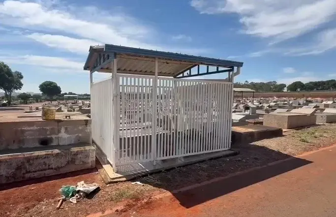 Segundo ele, há túmulos abertos com ossos humanos expostos e peças metálicas arrancadas. Em meio ao cenário de insegurança, um dos jazigos do cemitério foi cercado com grade completa ao redor de toda a estrutura, como tentativa de impedir novos furtos.