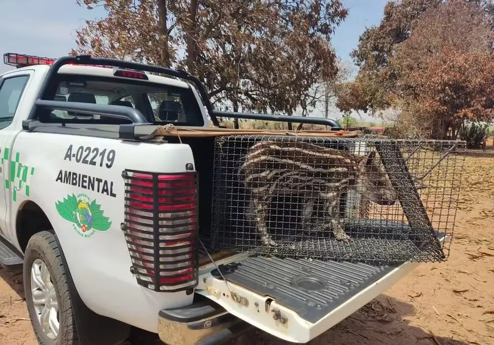 A Polícia Ambiental informou que o animal provavelmente se feriu na tentativa de fugir do fogo e alertou que os incêndios têm afetado o habitat natural da fauna silvestre.