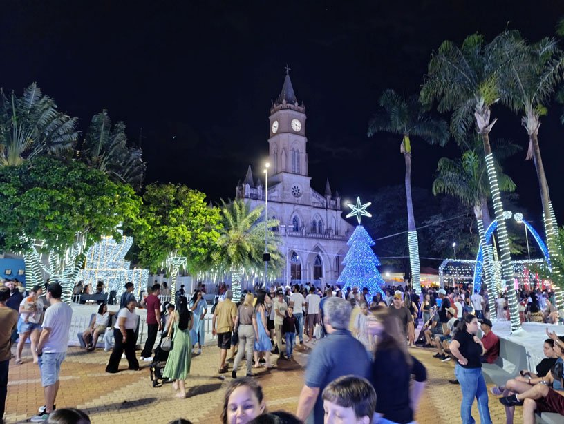 Palmital entrou oficialmente no clima natalino no último sábado (06/12) com a abertura da quinta edição do projeto Natal Feliz. O evento é promovido pela Prefeitura e conta com o apoio do Sindicato do Comércio Varejista (Sincomercio) e de outros parceiros, com o objetivo de incentivar o setor comercial durante o período de fim de ano e atrair o público para o centro da cidade, oferecendo uma programação de música, cultura e lazer na praça da Matriz de São Sebastião, que ficou lotada na primeira noite.