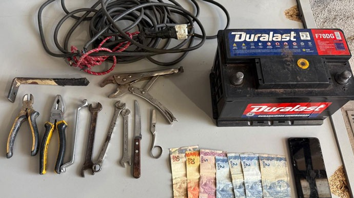 Com o suspeito, os policiais encontraram diversos objetos possivelmente furtados, que foram apreendidos e encaminhados à Central de Polícia Judiciária (CPJ) de Assis. Entre eles estavam: