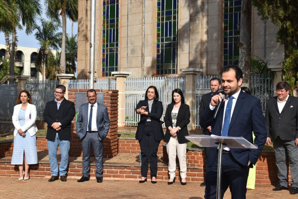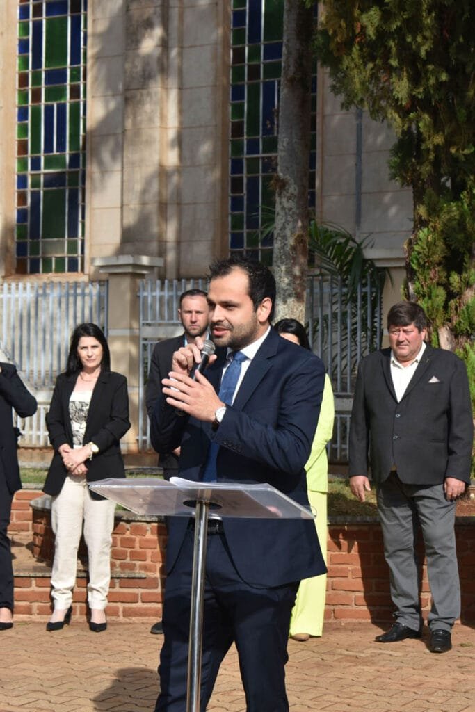 A cerimônia foi aberta com hasteamento das bandeiras e o canto dos hinos Nacional e de Palmital, seguidos de momento ecumênico comandado pelo padre Marcelo Barreto, da Paróquia de São Sebastião, e pelo pastor Edimar José Rodrigues, da Igreja Presbiteriana Renovada. Houve também pronunciamentos da secretária de Educação Márcia Descrove, de Cristian Nogueira, representando o Legislativo, e da vice-prefeita Ana Elisa.