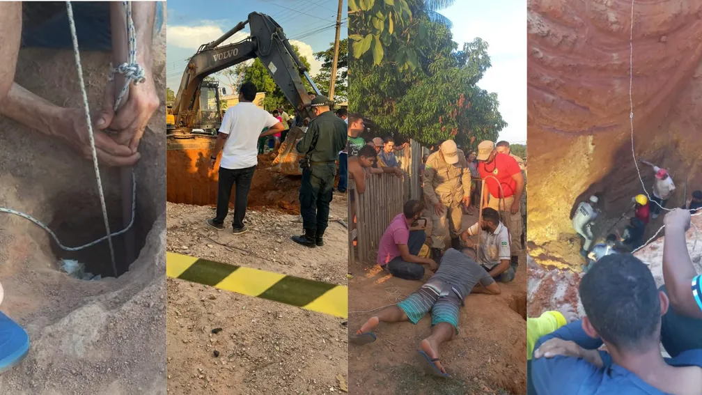 Bebê cai em poço e é resgatado com retroescavadeira após 4 horas
