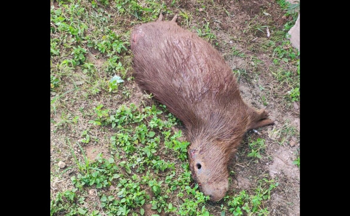 Um funcionário da Prefeitura realizou a retirada da capivara e a enterrou em local apropriado. O animal estava em estado de decomposição, indicando que a morte havia ocorrido há várias horas. O corpo apresentava escoriações e ferimentos aparentes, sugerindo que possa ter sido atropelado ou até atacado por cachorros.