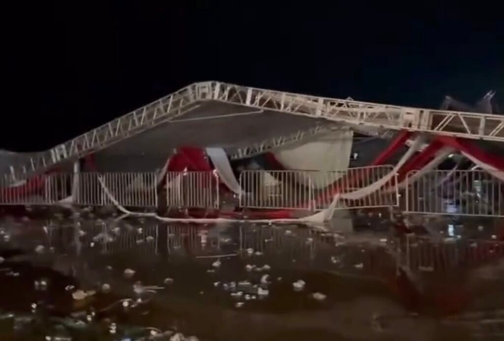 Um vídeo obtido pela TV TEM e pelo g1 mostra o momento em que a estrutura metálica de um hangar desabou e o desespero dos participantes durante uma festa de estudantes de medicina em Regente Feijó (SP). O acidente aconteceu na madrugada de domingo (02/11), em meio a um forte temporal com ventos que chegaram a quase 100 km/h.