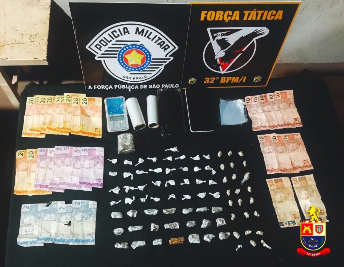 Equipes da Força Tática e demais viaturas realizaram buscas e localizaram o suspeito na praça central de Prudenciana. Ele recebeu voz de prisão e foi algemado devido ao risco de fuga.