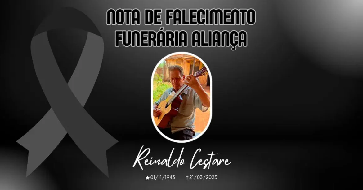 21/03/2025 – Reinaldo Cestare (Nardão Cestare), 81 anos, casado. Deixa a esposa Erotildes Orlandi e os filhos Regiane Orlandi Cestare e Leandro Cestare (In memoriam). Está sendo velado na funerária Aliança e seu sepultamento ocorrerá amanhã (22/03), às 8 horas no cemitério municipal.