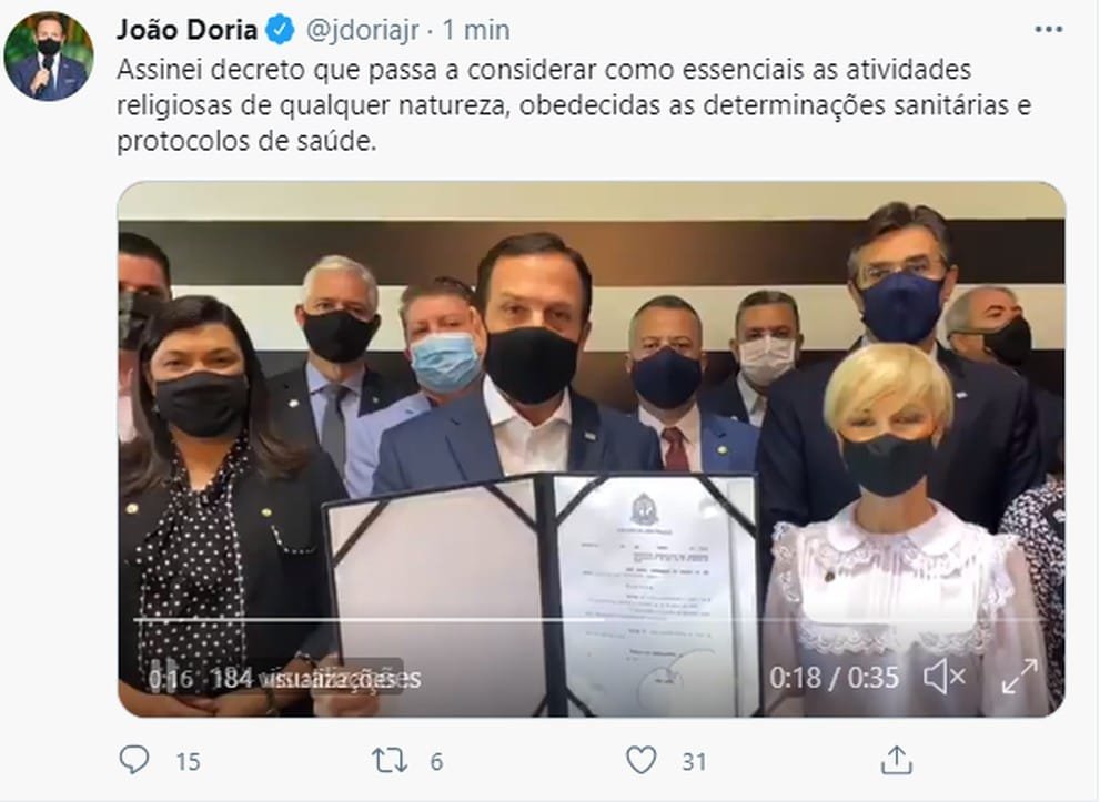 O magistrado lembra que o decreto estadual nº 65.856 prevê um máximo de até 60% da capacidade de ocupação de estabelecimentos, mas para atividades específicas, nas esferas comerciais, religiosas, de serviços gerais, de restaurantes e similares, de salão de beleza e barbearia, culturais e de academias de esporte, “com rigorosa observância dos protocolos sanitários de biossegurança”. “Não prevê, repiso, situação de eventos outros”, complementa.