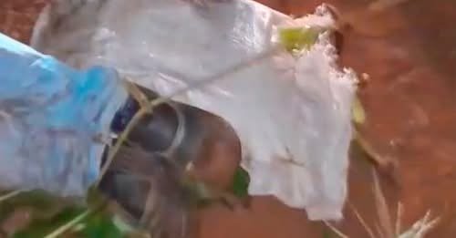 No decorrer da ocorrência, J. voltou a se alterar, apoderou-se de um facão e cortou a planta rente ao solo, fazendo com que ela caísse ao chão. No local, foram apreendidos um pé de planta análoga à maconha, com peso aproximado de 2,2 quilos, um recipiente contendo flores semelhantes à droga e uma balança de precisão.