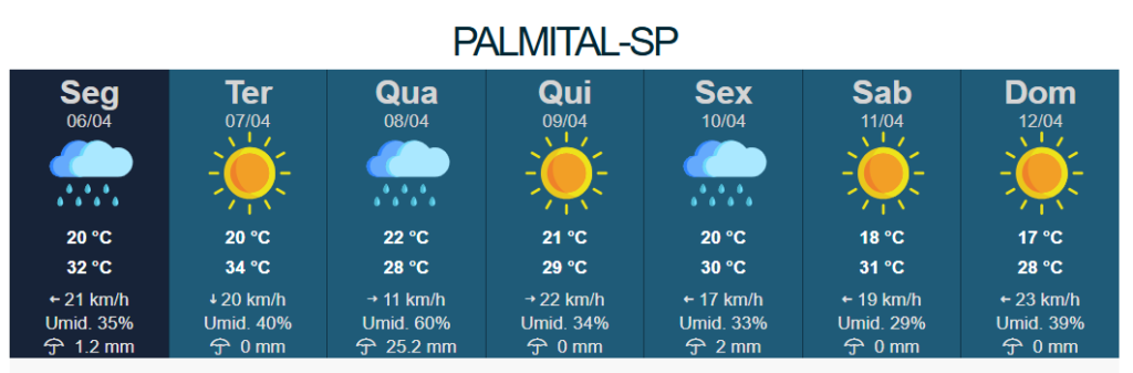 CONFIRA A PREVISÃO DO IPMET/UNESP PARA PALMITAL