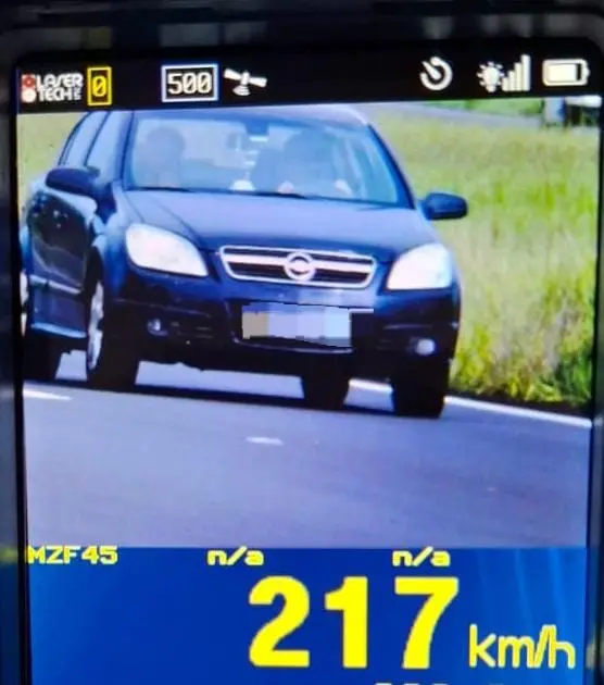 Em uma ocorrência divulgada pela Polícia Rodoviária na tarde de sexta-feira passada (13/02), ficou nítida a situação de imprudência dos motoristas mais apressados. Durante controle com radar no quilômetro 312 da Castello Branco (SP-280), município de Santa Cruz do Rio Pardo, um GM Vectra preto foi flagrado a incríveis 217 km/h em trecho em que a máxima permitida é 120 km/h. O condutor recebeu multa gravíssima, multiplicada por 3 (R$ 880,41) e suspensão do direito de dirigir.