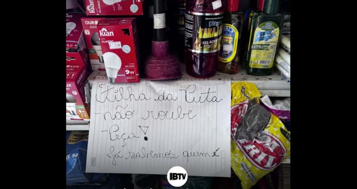 Diante da repetição dos furtos, o proprietário decidiu fixar um recado direto ao autor dentro do estabelecimento. A mensagem, em tom inusitado e firme, chamou a atenção — e surtiu efeito quase imediato.