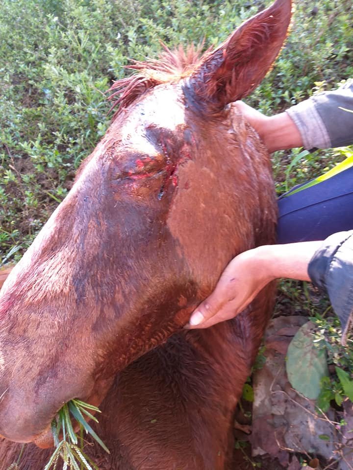 De acordo com informações, na manhã desta sexta-feira (07/06) a égua foi sozinha até a casa de seu tutor na Vila Assunta, toda machucada e com um ferimento na testa causada por golpes de faca na altura do olho esquerdo. “Ela estava sangrando bastante e o corte pode ter sido meio profundo e por isso pode ter afetado a visão do equino.” conta o tutor.