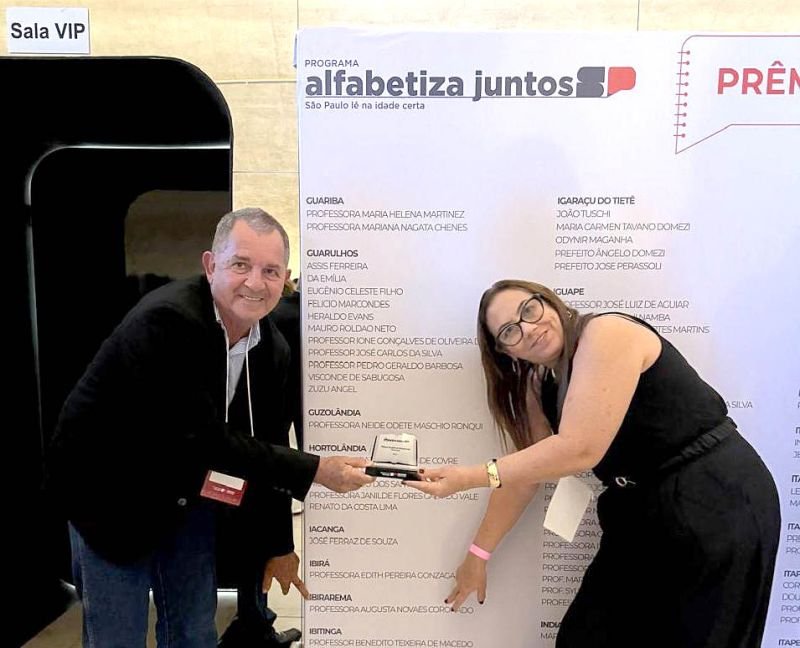 O Índice de Excelência Educacional integra o programa Alfabetiza Juntos SP e reconhece o desempenho dos municípios em ações que garantem a fluência leitora e a alfabetização das crianças na idade certa, combatendo a defasagem e a evasão escolar. O prêmio foi recebido pelo prefeito José Benedito Camacho, o Camachinho, acompanhado da primeira-dama Nereide Camacho.
