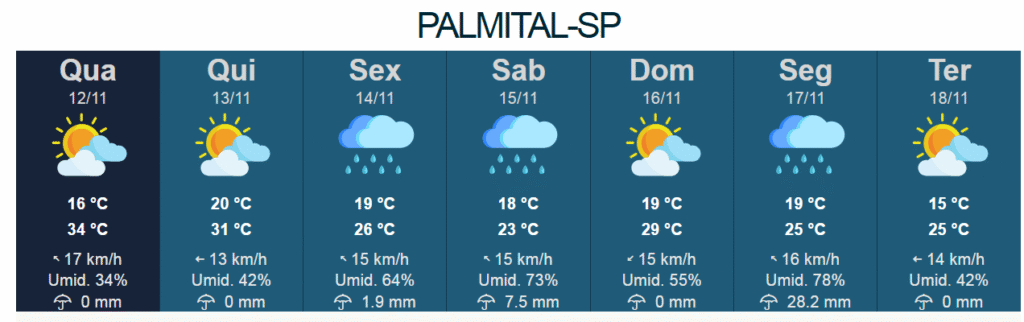 CONFIRA A PREVISÃO DO TEMPO PARA PALMITAL