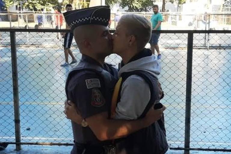 O soldado da Polícia Militar Leandro Barcellos Prior, 28 anos, pediu em casamento seu namorado, usando a farda da corporação, na manhã deste domingo (23/06) nos Campos Elíseos (região central da capital paulista).