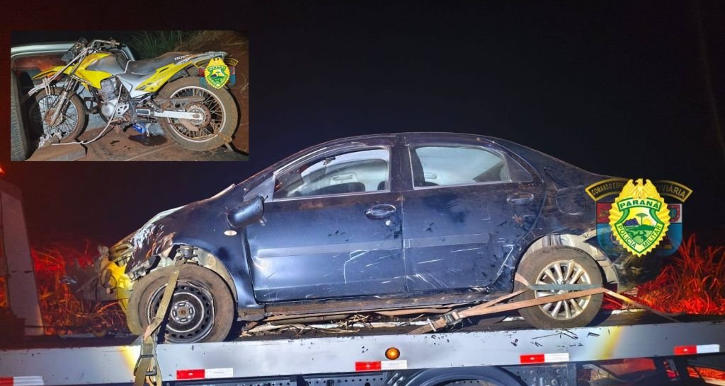 A colisão, por volta das 19 horas, envolveu uma motocicleta Honda Bros amarela, com placa de Bandeirantes, conduzida por um morador do bairro Tabuleta (zona rural do município), e um Toyota Etios preto, com placas de Siqueira Campos.