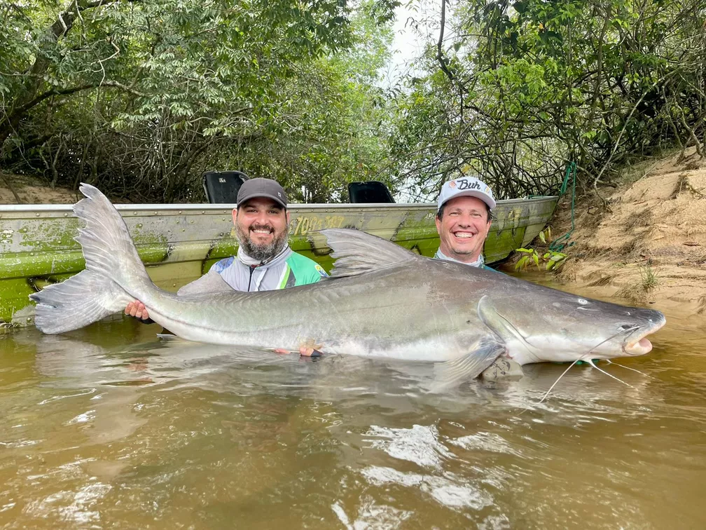 Uma pesca no Rio Juruena, na altura da divisa dos estados do Mato Grosso, Amazonas e Pará, terminou com a captura e soltura de um peixe piraíba, espécie conhecida como “tubarão de água doce” e um dos maiores peixes de couro da América do Sul.