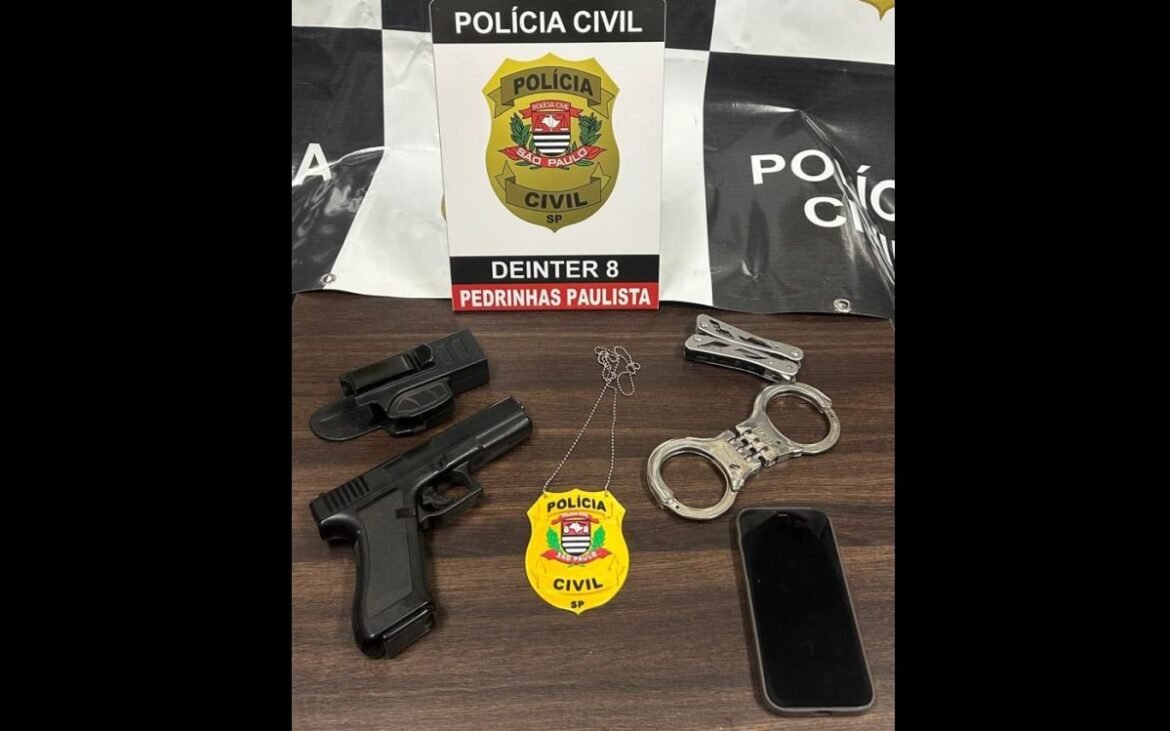 A Polícia Civil do Estado de São Paulo prendeu na tarde da última sexta-feira (20/02) um homem de 28 anos acusado de se passar por policial civil na cidade de Pedrinhas Paulista. Segundo informações da Delegacia local, o suspeito se apresentava como integrante do Setor de Inteligência da corporação, afirmando estar lotado na Capital. Para sustentar a farsa, utilizava um distintivo da Polícia Civil e portava um simulacro de arma de fogo, o que lhe conferia aparência de agente público em serviço.