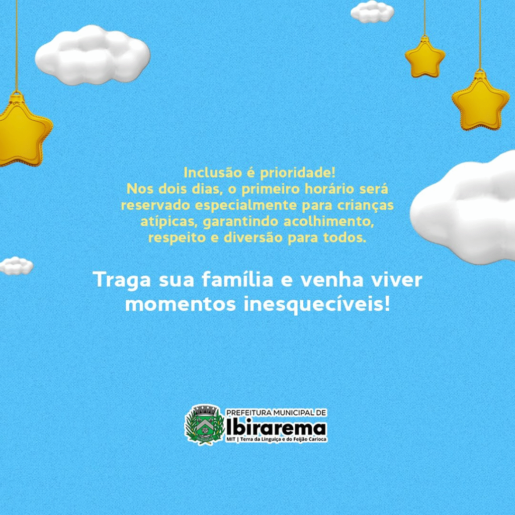 Com o objetivo de promover a inclusão, a Prefeitura também anunciou que os primeiros horários dos dois dias serão dedicados a crianças deficientes e neurodivergentes, garantindo às famílias atípicas todo cuidado e acolhimento.